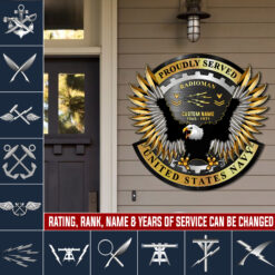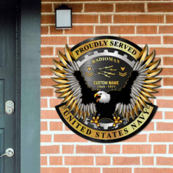 Customize your Cut Metal Sign with your name, rank, and years of service for a truly one-of-a-kind timepiece. This personalized feature allows you to showcase your military journey with pride and distinction.