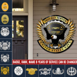 Elevate your Cut Metal Sign with a personal touch by incorporating your custom details like name, rank, and years of service. This unique addition commemorates your military experience in a stylish and meaningful way.