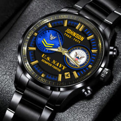 US Navy, Proud Veteran – Black Stainless Steel Watch
