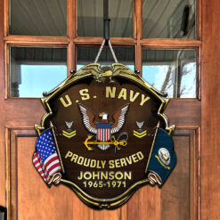US Navy, Land Of The Free, Because Of The Brave – 2 Layers Wooden Sign 16x16in