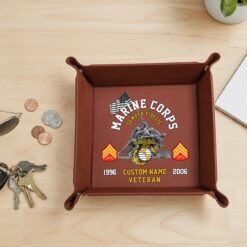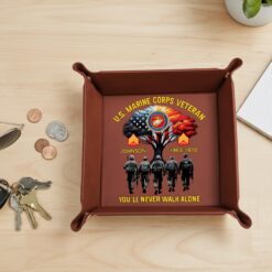 US Marine Corps, No One Fights Alone – Personalized Leather Valet Tray