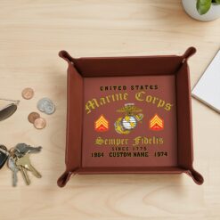 US Marine Corps, American By Birth, Veteran By Choice – Personalized Leather Valet Tray