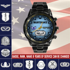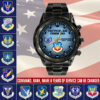 Customize your Black Stainless Steel Watch with your name, rank, and years of service for a truly one-of-a-kind timepiece. This personalized feature allows you to showcase your military journey with pride and distinction.