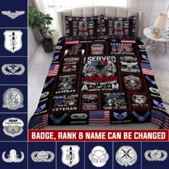 Elevate your quilt bed set with a personal touch by incorporating your custom details like name, rank, and years of service. This unique addition commemorates your military experience in a stylish and meaningful way.