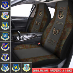 Elevate your Car Seat Covers with a personal touch by incorporating your custom details like name, rank, and years of service. This unique addition commemorates your military experience in a stylish and meaningful way.