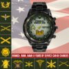 Elevate your Black Stainless Steel Watch with a personal touch by incorporating your custom details like name, rank, and years of service. This unique addition commemorates your military experience in a stylish and meaningful way.