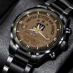 Customize your Black Stainless Steel Watch with your name, rank, and years of service for a truly one-of-a-kind timepiece. This personalized feature allows you to showcase your military journey with pride and distinction.