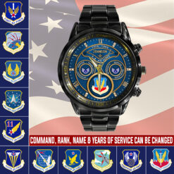 Personalize your Black Stainless Steel Watch with custom engravings of your name, rank, and years of service. This thoughtful addition transforms your watch into a cherished memento, honoring your dedication and commitment to service.