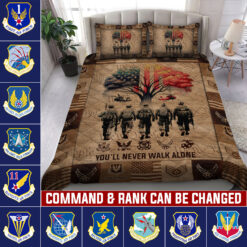 Elevate your quilt bed set with a personal touch by incorporating your custom details like name, rank, and years of service. This unique addition commemorates your military experience in a stylish and meaningful way.