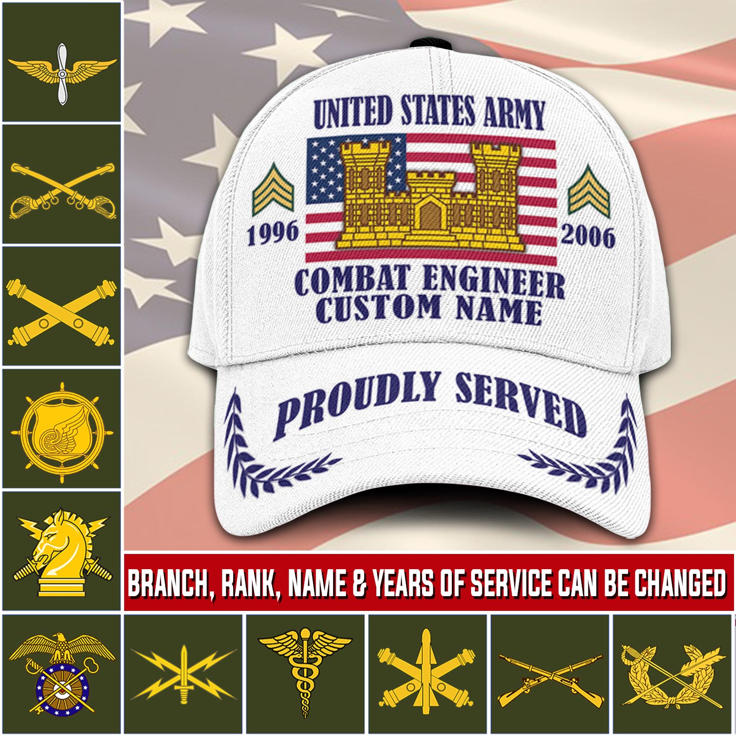 Adding custom elements like rank, name, and years of service transforms this cap into a personalized keepsake that will be cherished and unique.
