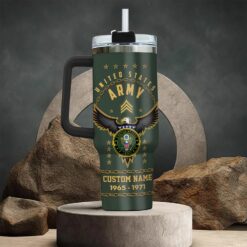 Honor the veteran in your life with our personalized tumbler options, allowing you to customize with their rank, name, and other personal details for a heartfelt touch.