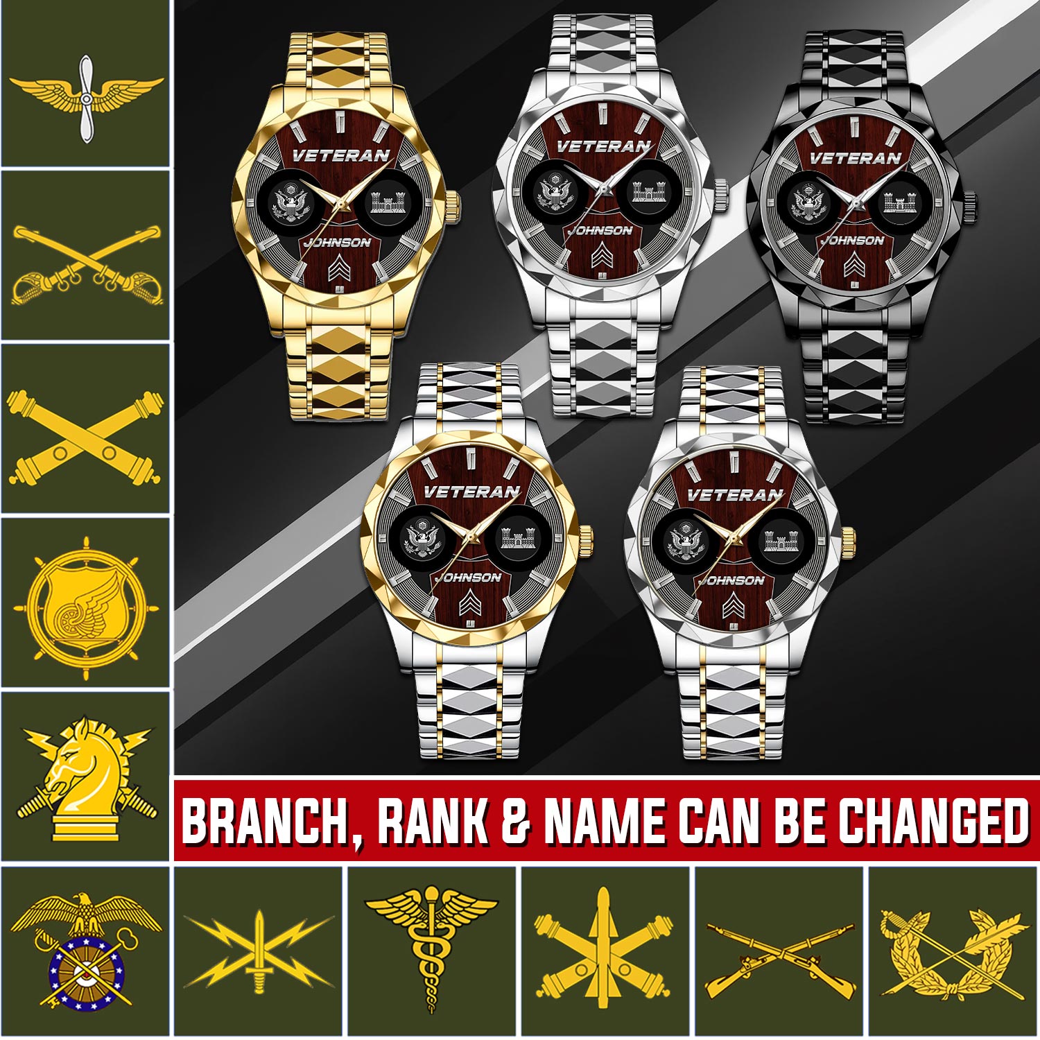 Customize your Diamond-Cut Bezel Watch with your name, rank, and years of service for a truly one-of-a-kind timepiece. This personalized feature allows you to showcase your military journey with pride and distinction.