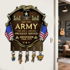 Customize your Cut Metal key holder with your name, rank, and years of service for a truly one-of-a-kind timepiece. This personalized feature allows you to showcase your military journey with pride and distinction.