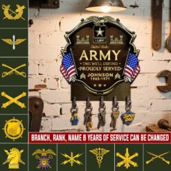 Army Branch, Freedom Over Fear – Metal Key Holder 8×8 Inch