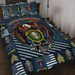 Elevate your quilt bed set with a personal touch by incorporating your custom details like name, rank, and years of service. This unique addition commemorates your military experience in a stylish and meaningful way.
