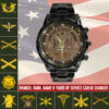 Personalize your Black Stainless Steel Watch with custom engravings of your name, rank, and years of service. This thoughtful addition transforms your watch into a cherished memento, honoring your dedication and commitment to service.