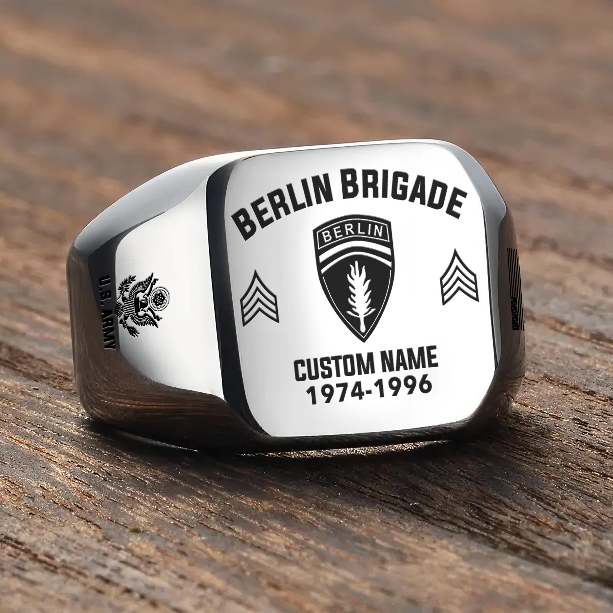 You’re enabled to customize your name, rank, rating, etc. to have them printed on the personalized engraved men’s ring. Transform this piece into a personal memorial of your service and accomplishments.