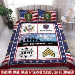 Customize your quilt bed set with your name, rank, and years of service for a truly one-of-a-kind timepiece. This personalized feature allows you to showcase your military journey with pride and distinction.