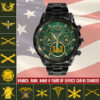 Personalize your Black Stainless Steel Watch with custom engravings of your name, rank, and years of service. This thoughtful addition transforms your watch into a cherished memento, honoring your dedication and commitment to service.