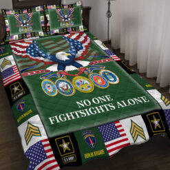 Elevate your quilt bed set with a personal touch by incorporating your custom details like name, rank, and years of service. This unique addition commemorates your military experience in a stylish and meaningful way.