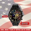 Elevate your Black Stainless Steel Watch with a personal touch by incorporating your custom details like name, rank, and years of service. This unique addition commemorates your military experience in a stylish and meaningful way.