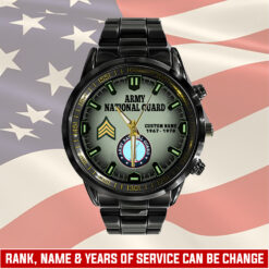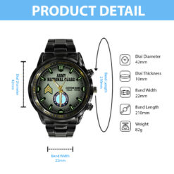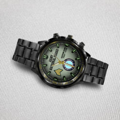 Make your Black Stainless Steel Watch a reflection of your personal journey by including custom details like your name, rank, and years of service. This personalized feature not only adds a touch of elegance but also serves as a timeless tribute to your dedicated service to our country.