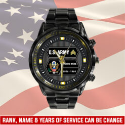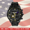 Personalize your Black Stainless Steel Watch with custom engravings of your name, rank, and years of service. This thoughtful addition transforms your watch into a cherished memento, honoring your dedication and commitment to service.