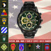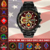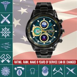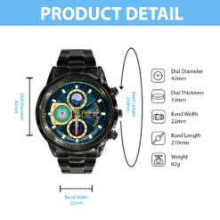 Make your Black Stainless Steel Watch a reflection of your personal journey by including custom details like your name, rank, and years of service. This personalized feature not only adds a touch of elegance but also serves as a timeless tribute to your dedicated service to our country.