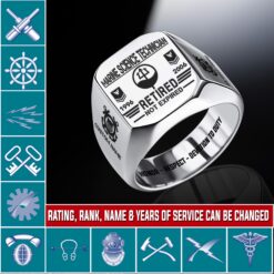 You’re enabled to customize your name, rank, rating, etc. to have them printed on the personalized engraved men’s ring. Transform this piece into a personal memorial of your service and accomplishments.