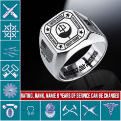 You’re enabled to customize your name, rank, rating, etc. to have them printed on the personalized engraved men’s ring. Create a unique piece that reflects your military journey and personal achievements.
