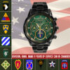 Personalize your Black Stainless Steel Watch with custom engravings of your name, rank, and years of service. This thoughtful addition transforms your watch into a cherished memento, honoring your dedication and commitment to service.