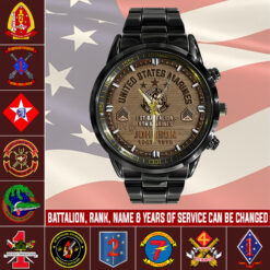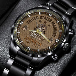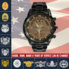 Make your Black Stainless Steel Watch uniquely yours by adding your custom information such as name, rank, and years of service. This personalized detail adds a special touch, celebrating your military journey with elegance and grace.