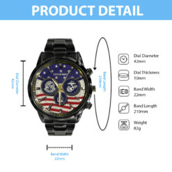 Elevate your Black Stainless Steel Watch with a personal touch by incorporating your custom details like name, rank, and years of service. This unique addition commemorates your military experience in a stylish and meaningful way.