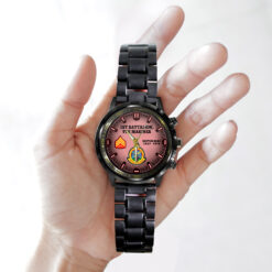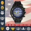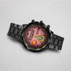 Personalize your Black Stainless Steel Watch with custom engravings of your name, rank, and years of service. This thoughtful addition transforms your watch into a cherished memento, honoring your dedication and commitment to service.
