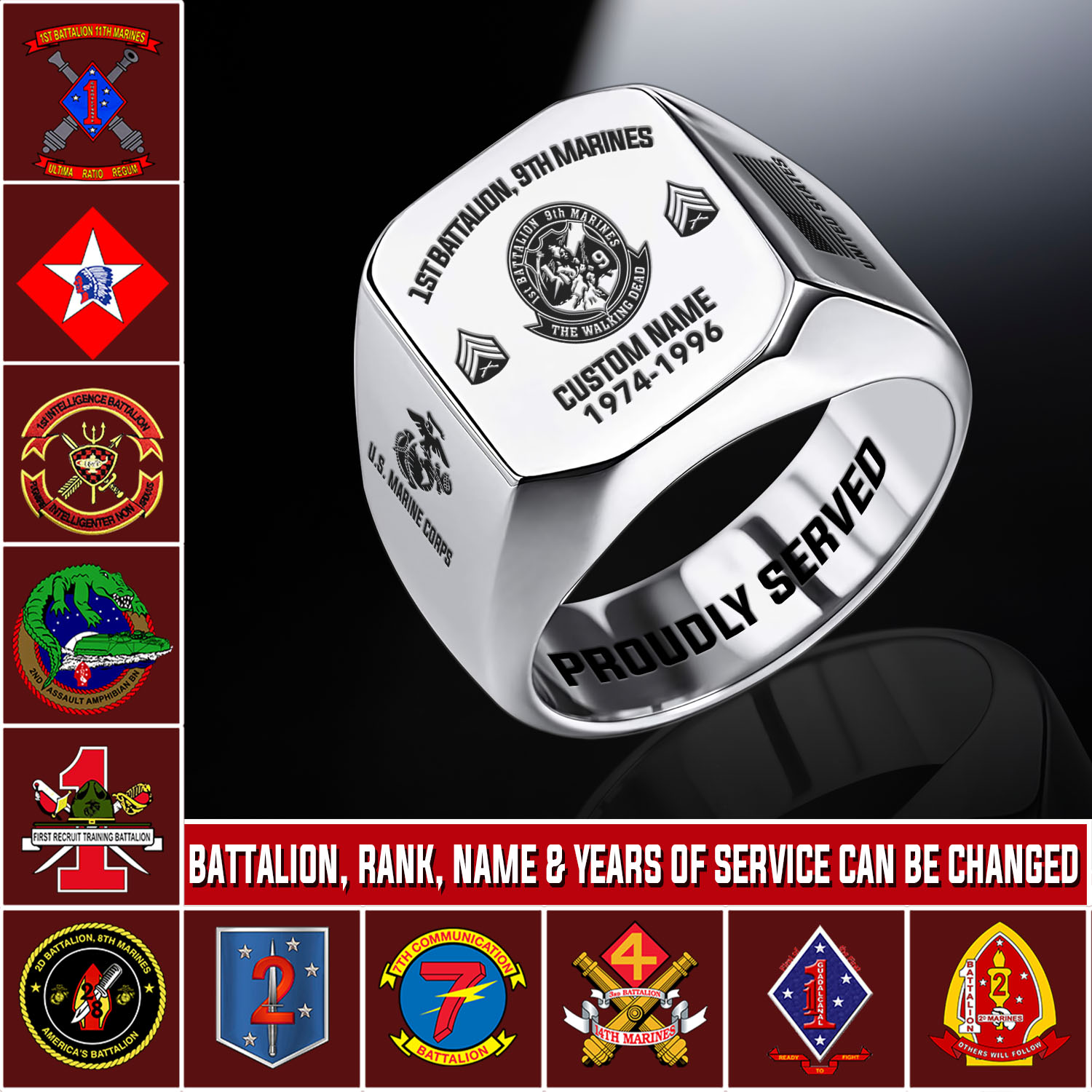 Marine Battalion, W 4 Marines Chief Warrant Officer 4 – Engraved Men’s Ring