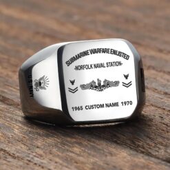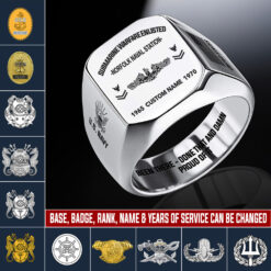 You’re enabled to customize your name, rank, rating, etc. to have them printed on the personalized engraved men’s ring. Make it uniquely yours by incorporating elements that celebrate your military identity and legacy.