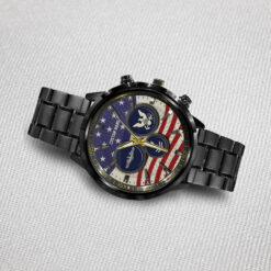 Make your Black Stainless Steel Watch a reflection of your personal journey by including custom details like your name, rank, and years of service. This personalized feature not only adds a touch of elegance but also serves as a timeless tribute to your dedicated service to our country.