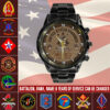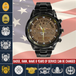 Make your Black Stainless Steel Watch a reflection of your personal journey by including custom details like your name, rank, and years of service. This personalized feature not only adds a touch of elegance but also serves as a timeless tribute to your dedicated service to our country.