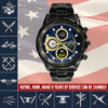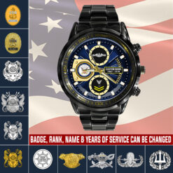 Make your Black Stainless Steel Watch uniquely yours by adding your custom information such as name, rank, and years of service. This personalized detail adds a special touch, celebrating your military journey with elegance and grace.