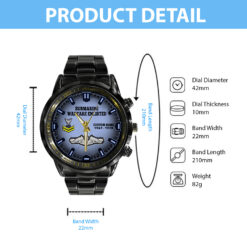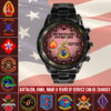 Customize your Black Stainless Steel Watch with your name, rank, and years of service for a truly one-of-a-kind timepiece. This personalized feature allows you to showcase your military journey with pride and distinction.