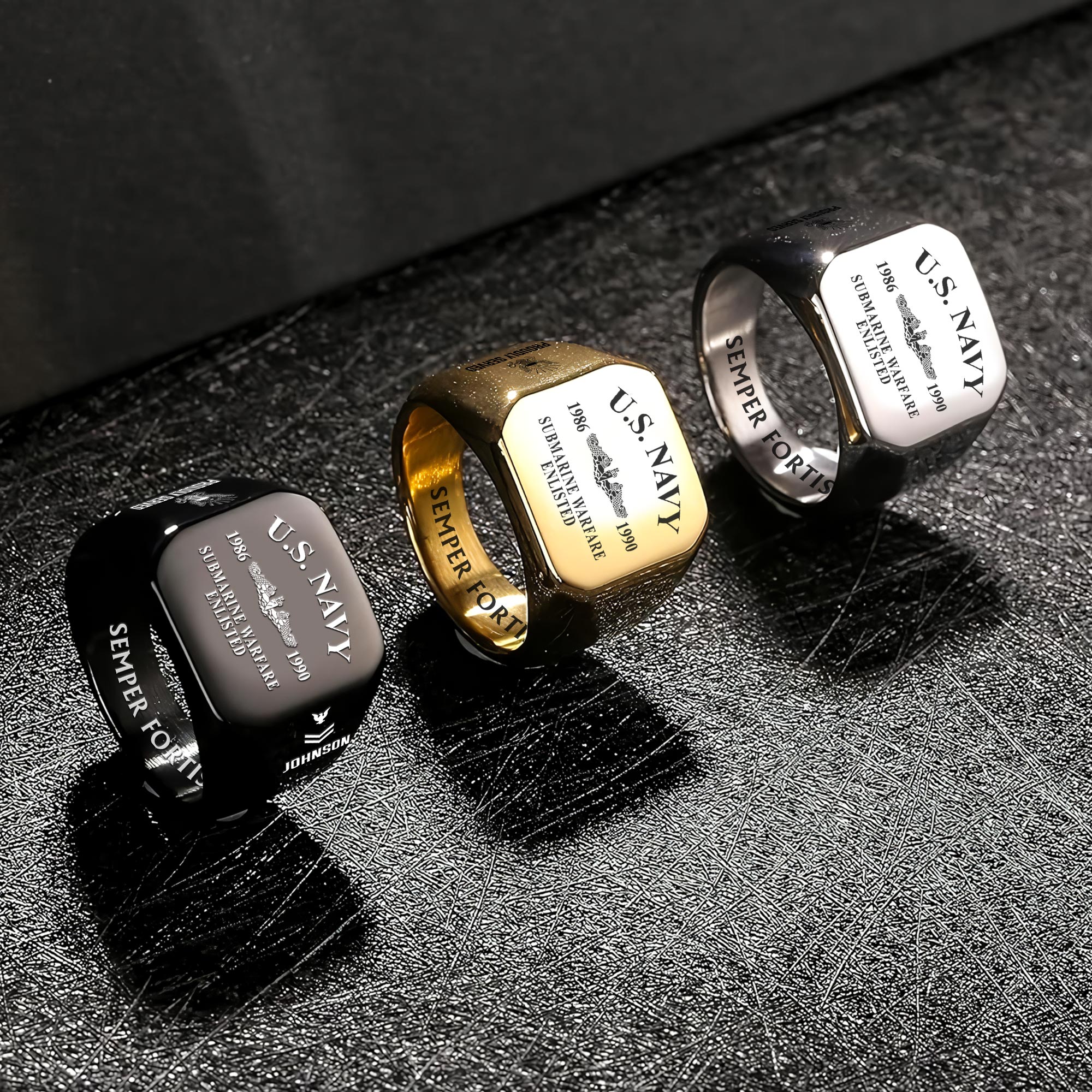 You’re enabled to customize your name, rank, rating, etc. to have them printed on the personalized engraved men’s ring. Craft a distinctive piece that permanently captures your military story and personal milestones.