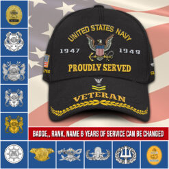 Navy Badge, Proud Veteran – Embroidered Classic Cap