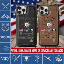 Customize your tribute with our personalized Leather Flip Phone Case. Add your name, rank, years of service, and more to create a unique item that honors your dedication.