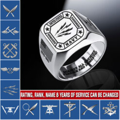 You’re enabled to customize your name, rank, rating, etc. to have them printed on the personalized engraved men’s ring. Make it uniquely yours by incorporating elements that celebrate your military identity and legacy.