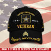The option to customize with details like rank, name, and years of service adds a personal touch that sets this cap apart. It’s a thoughtful way to make it truly one-of-a-kind.