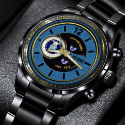 Elevate your Black Stainless Steel Watch with a personal touch by incorporating your custom details like name, rank, and years of service. This unique addition commemorates your military experience in a stylish and meaningful way.