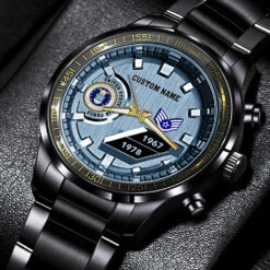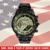 Customize your Black Stainless Steel Watch with your name, rank, and years of service for a truly one-of-a-kind timepiece. This personalized feature allows you to showcase your military journey with pride and distinction.