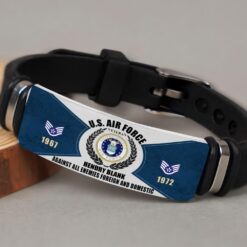 Featuring a dynamic adjustable strap, the bracelet transcends conventional sizing constraints. It emerges as a powerful symbol of veteran appreciation, embodying the profound values of service, honor, and national pride.
