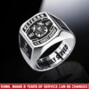 You’re enabled to customize your name, rank, rating, etc. to have them printed on the personalized engraved men’s ring. Transform this piece into a personal memorial of your service and accomplishments.