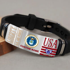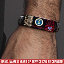 Incorporating an adaptive strap mechanism, the bracelet transcends traditional sizing limitations. It emerges as a profound tribute to veterans, symbolizing dedication, service, and the enduring spirit of patriotism.